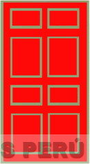 EL DISEÑO ESTILIZADO DE UNA PUERTA DE FONDO ROJO Y BORDE DORADO EN CUYO INTERIOR APARECEN OCHO RECTANGULOS EN BORDES DORADOS, CONFORME AL FACSIMIL ADJUNTO,