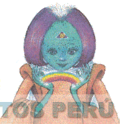 El diseño estilizado de un personaje extraterrestre la cual tiene un triángulo en la frente y la parte central del pelo de color gris, con un vestido, una capa y un arco iris, entre las manos reivindicando los colores blanco, morado, verde, amarillo, celeste, rojo, anaranjado y negro; conforme al modelo adjunto