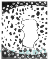 LA ETIQUETA IRREGULAR DE FONDO OSCURO CON MACHAS BLANCAS, PARTE DE CUYO INTERIOR ES UN SEGMENTO ELIPTICO DE FONDO BLANCO CON MANCHAS OSCURAS, Y EN EL CENTRO UNA FIGURA IRREGULAR, SEGUN MODELO ADJUNTO,