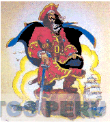 LA ETIQUETA CUADRANGULAR CONTENIENDO LA FIGURA ESTILIZADA DE UN PIRATA APOYADO SOBRE UN BARRIL SOBRE FONDO NUBOSO QUE INCLUYE EL DISEÑO DE UNA EMBARCACIÓN, EN LOS COLORES ROJO, AZUL, AMARILLO, MARRÓN, VERDE, BLANCO, NEGRO, CELESTE Y BEIGE; CONFORME AL MODELO ADJUNTO