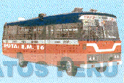 La representación estilizada de un ómnibus (sin reivindicar), con franjas en los colores azul marino, anaranjado y blanco; conforme al modelo adjunto