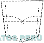 El bolsillo en forma de pentágono en cuyos bordes se aprecia una doble costura punteada, al centro una raya horizontal punteada y sobre ésta una figura curva que asemeja una letra E (minúscula) invertida; conforme al modelo
