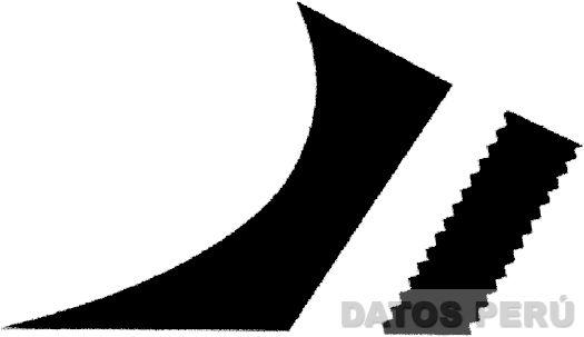 El logotipo conformado por una figura irregular dispuesta en forma diagonal con dos de sus bordes en zig zag, al lado izquierdo una figura irregular; conforme al modelo adjunto