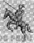 El logotipo conformado por la figura estilizada de un jinete con un escudo y una espada, montado sobre un caballo, sin reivindicar colores; conforme al modelo adjunto