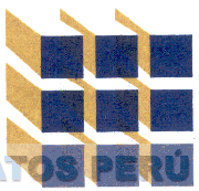 El logotipo conformado por la representación estilizada de un cubo formado por nueve barras paralelas, en los colores azul y dorado; conforme al modelo adjunto