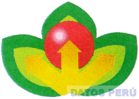 LA ETIQUETA CONTENIENDO LA FIGURA DE UNA PLANTA CON TRES HOJAS DE COLOR VERDE CLARO Y BORDE VERDE OSCURO, DENTRO DE ELLA UNA ESFERA ROJA Y A MODO DE ESTAMBRES, TRES FLECHAS EN COLOR AMARILLO; SEGUN MODELO ADJUNTO,