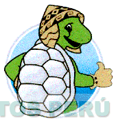 El logotipo conformado por una figura circular y la representación humanizada de una tortuga, llevando un chullo y guantes, en los colores marrón, plomo, blanco, celeste y azul; conforme al modelo adjunto
