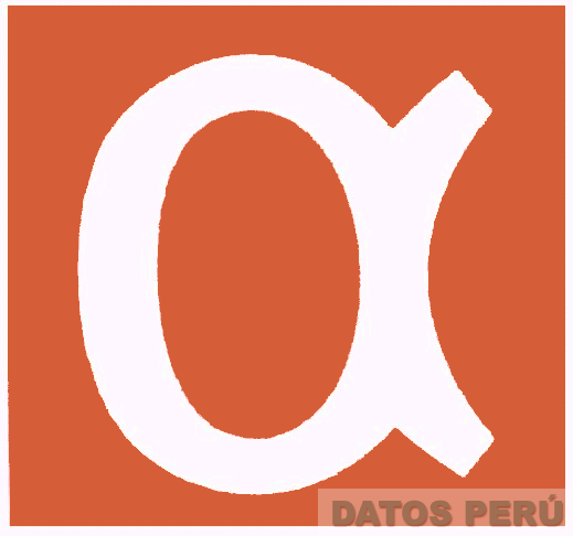 El logotipo de forma cuadrangular y fondo color anaranjado conteniendo la representación estilizada de la letra griega alfa en color blanco; conforme al modelo adjunto