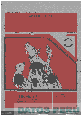 BOLSA/EMPAQUE QUE PRESENTA EL DISEÑO DE UNA OVEJA, UNA RES Y UNA VICUÑA, A LOS CUALES SE SOBREPONE EL DISEÑO DE CUATRO PARASITOS, TODO EN LOS COLORES ROJO, PLATEADO Y NEGRO, CONFORME AL FACSIMIL ADJUNTO,