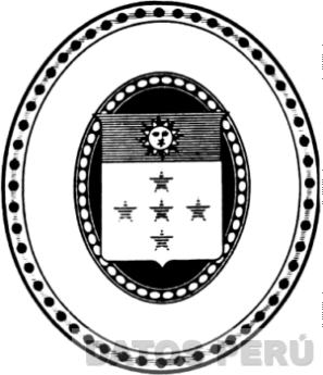LA ETIQUETA OVAL DE DOBLE BORDE DECORADO CON PEQUEÑOS CIRCULOS CONTENIENDO LA FIGURA DE UN ESCUDO DE ARMAS MOSTRANDO EN UN CAMPO SUPERIOR LA REPRESENTACION ESTILIZADA DEL SOL Y EN EL CAMPO INFERIOR LA FIGURA DE 5 ESTRELLAS DISPUESTAS EN FORMA DE CRUZ, CONFORME AL MODELO ADJUNTO,
