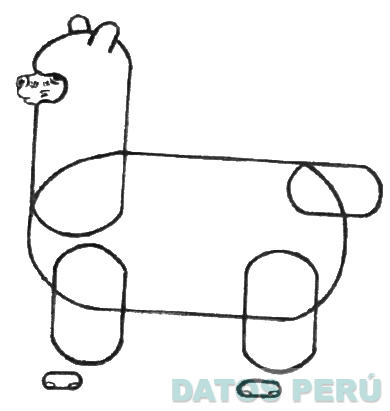 La figura estilizada de una alpaca raza Huacayo, formada por líneas paralelas unidas por líneas curvas, en colores blanco y negro; conforme al modelo adjunto