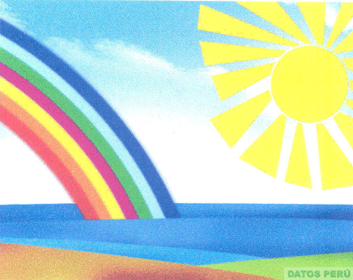El logotipo conformado por la representación estilizada de un paisaje constituido por una laguna, un arco iris y un sol; todo en la combinación de colores celeste, amarillo, azul en diversas tonalidades, marrón en diversas tonalidades, anaranjado, verde, fucsia y blanco; conforme al modelo adjunto