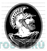 La figura rectangular en cuyo fondo aparecen diversas líneas horizontales, en su interior aparece la figura de un ovalo con borde e interior sombreados que consigna el rostro estilizada de un guerrero romano, sin reivindicar colores; conforme al modelo adjunto