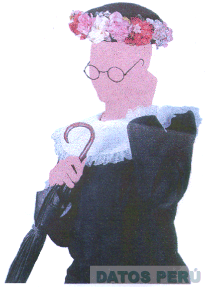 EL DISEÑO ESTILIZADO DE UN PERSONAJE FEMENINO CON LENTES SOSTENIENDO UN PARAGUAS CON LA MANO DERECHA Y VESTIDA CON TRAJE DE EPOCA Y SOMBRERO DE FLORES, TODO EN LOS COLORES BLANCO, NEGRO, ROSADO, ROJO Y MARRON, CONFORME AL FACSIMIL ADJUNTO,