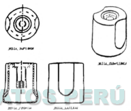LA REPRESENTACION DE LA FIGURA DE UNA PERILLA DE FORMA CILINDRICA EN CUYOS LADOS OPUESTOS APARECE UNA HENDIDURA EN FORMA OVALADA, VISTA EN SUS CUATRO POSICIONES (ARRIBA, ABAJO, DE COSTADO Y FRONTAL), CONFORME AL MODELO ADJUNTO,