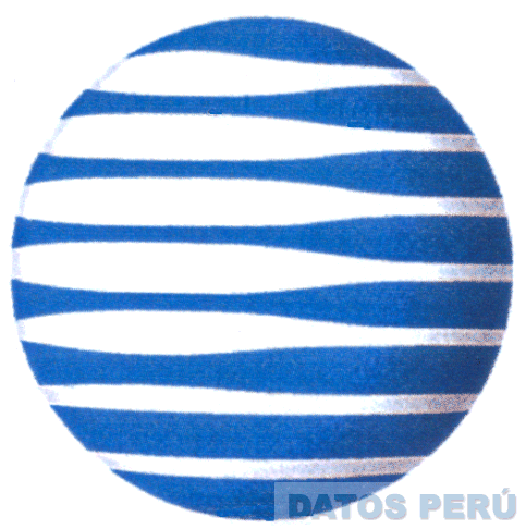 El diseño de una esfera en cuyo interior se aprecian líneas que se ensanchan hacia el extremo izquierdo, todo en los colores azul y blanco; conforme al modelo adjunto