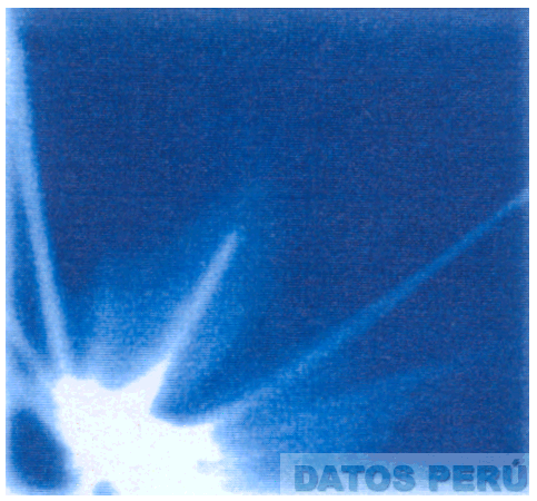 EL LOGOTIPO CUADRADO DE FONDO COLOR AZUL CON UNA MANCHA COLOR BLANCO DE LA CUAL SE PROYECTAN LINEAS CELESTES; CONFORME AL MODELO ADJUNTO