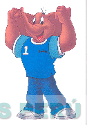El diseño humanizado de un elefante de pie, con las extremidades superiores en alto, y atuendo deportivo, en particular, jeans, polo que consigna la denominación MELVIN y el número 1 y zapatillas, todo en los colores marrón, azul, verde, rojo, blanco, gris y negro; conforme al modelo adjunto