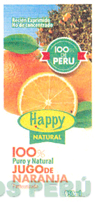 100% DE PERU HAPPY NATURAL 100% PURO Y NATURAL JUGO DE NARANJA