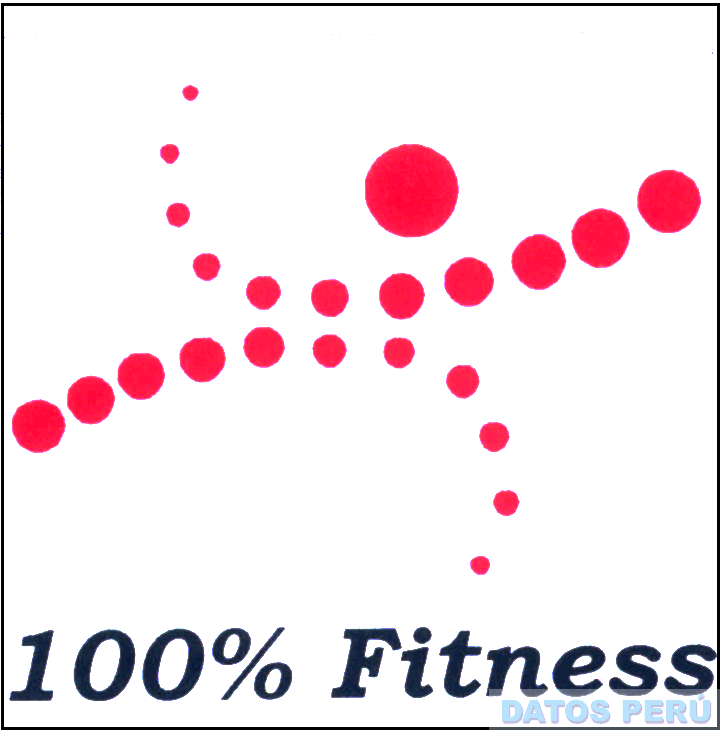El logotipo conformado por la denominación 100% FITNESS (sin reivindicar) escrita en letras y números característicos y la representación estilizada de una figura humanizada conformada por diversos círculos, todo en los colores rojo y negro; conforme al modelo adjunto