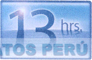 El logotipo conformado por la denominación 13 hrs. escrita en letras características, asimismo se aprecia un fulgor encima del número 1; todo dentro de una figura rectangular; en los colores blanco y distintas tonalidades de azul y celeste; conforme al modelo adjunto