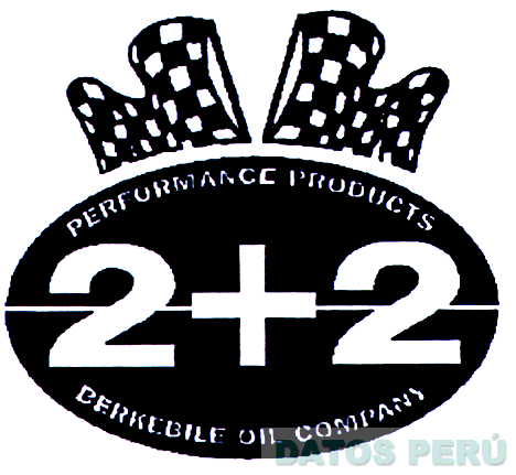 LA DENOMINACION 2+2 PERFORMANCE PRODUCTS BERKEBILE OIL COMPANY, DENTRO DE UNA FIGURA OVAL DIVIDIDA EN DOS PARTES IGUALES POR UNA LINEA HORIZONTAL Y SOBRE ELLA, EL DISEÑO DE DOS BANDERAS FLAMEANTES, CONFORME AL MODELO ADJUNTO,