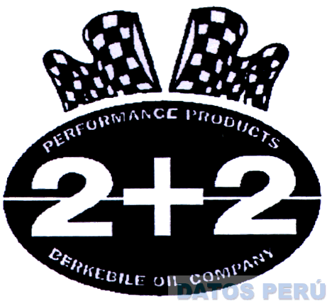 LA DENOMINACION 2+2 PERFORMANCE PRODUCTS BERKEBILE OIL COMPANY, DENTRO DE UNA FIGURA OVAL DIVIDIDA EN DOS PARTES IGUALES POR UNA LINEA HORIZONTAL Y SOBRE ELLA, EL DISEÑO DE DOS BANDERAS FLAMEANTES, CONFORME AL FACSIMIL ADJUNTO,