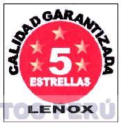 El logotipo conformado por el número 5 y la denominación ESTRELLAS escritas en letras características de color blanco dentro de un círculo de color rojo y figuras estilizadas de cinco estrellas de color amarillo, en la parte superior se aprecia la denominación CALIDAD GARANTIZADA (sin reivindicar) y en la parte inferior se aprecia la denominación LENOX escrita en letras características de color negro; conforme al modelo adjunto.