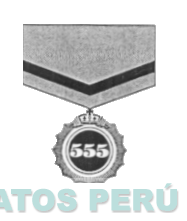 La medalla con círculos concéntricos y fondo oscuro que lleva en la parte superior una corona, coronada a su vez, por una cruz de malta y que contiene el numeral 555, que pende de una cinta decorativa, conforme al modelo