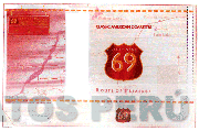 La figura estilizada de una insignia encerrando el número estilizado 69 y la denominación SIXTY NINE escrita en letras características, en la parte superior la denominación CLASSIC AMERICAN CIGARETTES escrita en letras características y en la parte inferior la denominación ROUTE OF PLEASURE escrita en letras características, como fondo el mapa de una carretera, en la parte izquierda se observa la representación de un mapa de una carretera, acompañado de una figura rectangular conteniendo la denominación ROUTE OF PLEASURE escrita en letras características y la leyenda del mapa, todo ello entre dos líneas punteadas, y en la parte inferior la representación de un escudo con el número estilizado 69, sin reivindicar colores; conforme al modelo adjunto