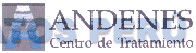 La letra A, cortada de arriba hacia abajo con arcos concéntricos, en color azul que desde abajo hacia arriba se va desvaneciendo; dicha letra está encerrada en un recuadro negro, al lado la denominación ANDENES escrita en letras características y abajo la expresión CENTRO DE TRATAMIENTO, ambas en color negro; conforme al modelo adjunto