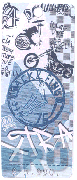 El logotipo conformado por la denominación XTRA escrita en letras características en color blanco y sombra negra sobre una estrella en color azul (pantone 16-4021 TPX), arriba una estrella en color blanco, todo sobre fondo celeste (pantone 14-4313 TPX) y una cenefa de cuadritos plomos (pantone 15-4305 TPX) intercalados en el lado derecho, sobre la cual aparece un conjunto de figuras y denominaciones (entre ellas una motocicleta, una zapatilla, una batería, un cráneo, una letra A, un escudo redondo con la denominación VI TRACK & FINISO 76, FUTURE VIVE LA REBELLI a los lados); en colores negro, azul oscuro; debajo una línea punteada y la referencia del precio $ 5.990 (sin reivindicar); conforme al modelo adjunto