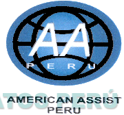 El logotipo conformado por la denominación AA PERU escrita en letras características dentro de la figura estilizada del mundo, en la parte inferior se observa la denominación AMERICAN ASSIST PERU escrita en letras características, todo en los colores azul en degradé, negro y blanco; conforme al modelo adjunto