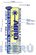 La etiqueta rectangular dividida en dos campos; en el campo derecho se aprecia la denominación ABRO U.S.A. escrita en letras características unida a la figura de un asterisco y el número 1000; en el campo izquierdo se aprecian las denominaciones RTV SILICONE SEALANT y, bordeando este rectángulo se aprecian las denominaciones BONDS, SEALS, INSULATES, JUNTA, SELLA, AISLA, separadas entre sí por un asterisco; todo en los colores blanco, amarillo pantone yellow C, azul pantone 2736 C y negro; conforme al modelo adjunto