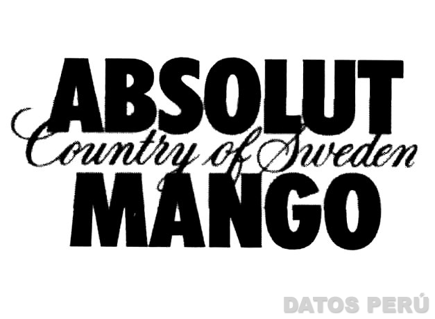 La denominación ABSOLUT COUNTRY OF SWEDEN MANGO escrita en letras características; conforme al modelo adjunto