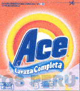 La etiqueta conformada por la denominación ACE escrita en letras características dentro de un conjunto de círculos, en la parte inferior la frase LAVAZA COMPLETA escrita en letras características y ubicada sobre una franja ondulante, asimismo debajo de todo lo descrito se aprecia la frase AROMA BEBE escrita en letras características, la representación estilizada de un oso, un pato, diversas estrellas y pompas de jabón, todo en la combinación de colores anaranjado, blanco, amarillo, rojo, azul, celeste, rosado y lila; conforme al modelo adjunto
