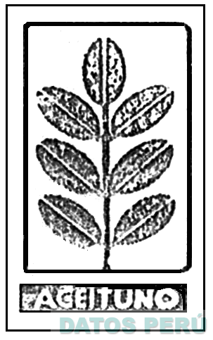 LA ETIQUETA RECTANGULAR CONFORMADA POR LA DENOMINACION ACEITUNO ESCRITAS EN LETRAS CARACTERISTICAS, CON LA FIGURA DE UNA PLANTA; CONFORME AL DISEÑO ADJUNTO