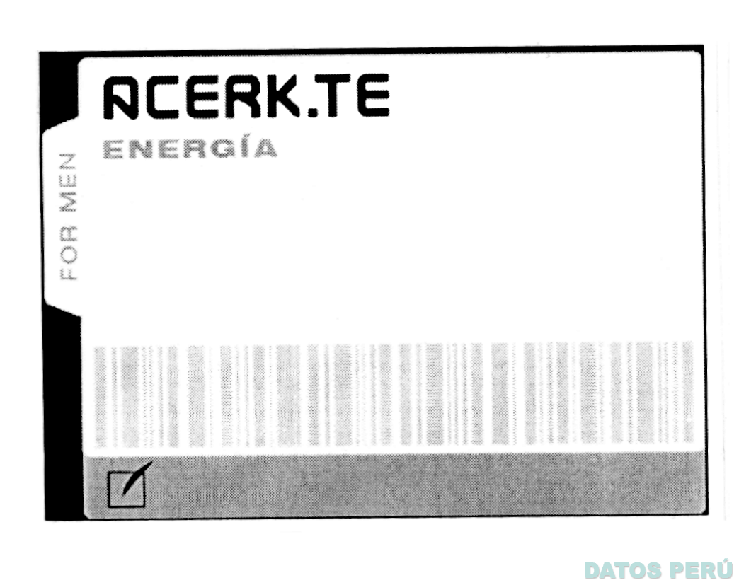 La denominación FOR MEN ACERK.TE ENERGÍA y logotipo, conforme al modelo