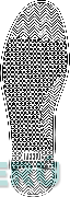 La figura de una suela de zapatilla con celdas hexagonales, en el talón, punta y arco ondas triangulares paralelas (sin reivindicar las celdas hexagonales ni las ondas triangulares paralelas), al centro del talón se aprecia la denominación ACERO escrita en letras características; conforme al modelo adjunto