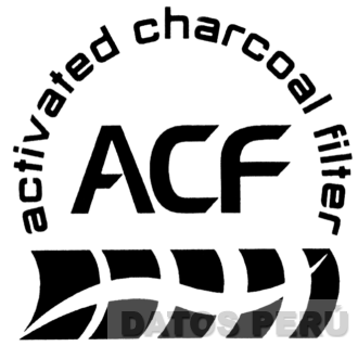 LAS LETRAS "ACF" Y ALREDEDOR LA DENOMINACION "ACTIVATED CHARCOAL FILTER". DEBAJO DE LAS LETRAS UNA FIGURA QUE ASEMEJA LA REPRESENTACION DE UNA BANDA COMPUESTA POR FRANJAS CURVADAS EN BLANCO Y NEGRO ATRAVESADAS POR UNA FRANJA QUE ASEMEJA UNA ONDA EN COLOR BLANCO, CONFORME AL MODELO ADJUNTO,