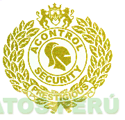 El logotipo conformado por la denominación ACONTROL SECURITY (sin reivindicar) escrita en letras características, acompañada por la figura estilizada del casco de una armadura, todo dentro de dos círculos concéntricos; asimismo, se aprecia en la parte superior la figura estilizada de dos leones sosteniendo una insignia y una corona en la parte superior, asimismo se aprecia en los bordes las figuras estilizadas de laureles en cuyo interior se aprecia la frase PRESTIGIOUS (sin reivindicar) escrita en letras características, en color dorado; conforme al modelo adjunto