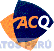 El logotipo conformado por la denominación ACQ escrita en letras características, dentro de dos figuras irregulares, en los colores anaranjado, azul y blanco; conforme al modelo adjunto