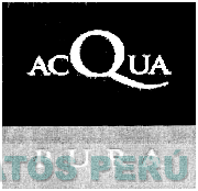 La etiqueta rectangular conformada por la denominación ACQUA escrita en letras características en un fondo de color oscuro y la denominación PURA escrita en letras características en un fondo de color claro; conforme al modelo adjunto, sin reivindicar las denominaciones
