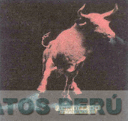El logotipo conformado por la denominación ACRIOLLADO TRES UVAS escrita en letras características de color blanco sobre un fondo marrón claro, encima se aprecia la figura de un toro de color rojo con polvo en las patas y exhalando vapor en color gris, todo sobre un fondo color negro, conforme al modelo adjunto