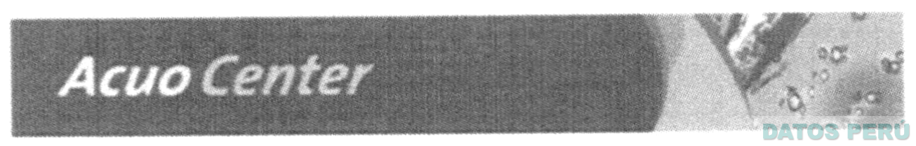 LA DENOMINACIÓN ACUO CENTER ESCRITA EN LETRAS CARACTERÍSTICAS SOBRE UNA BANDA HORIZONTAL CON UN DIBUJO DE FORMAS CURVAS Y CIRCULARES EN LA PARTE DERECHA; CONFORME AL MODELO ADJUNTO