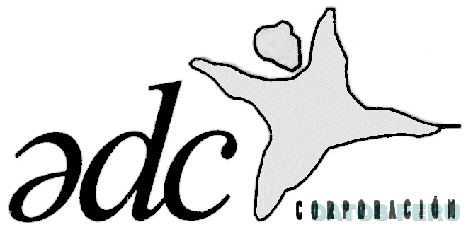 El logotipo conformado por la denominación ADC CORPORACION escrita en letras características y la figura estilizada de un hombre, sin reivindicar colores; conforme al modelo adjunto