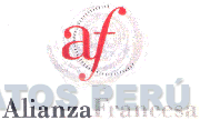 El logotipo conformado por la denominación ALIANZA FRANCESA escrita en letras características; en la parte superior se aprecian las letras A y F estilizadas sobre un espiral; todo en los colores negro, rojo, plomo; conforme al modelo adjunto