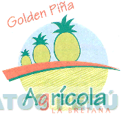 El logotipo conformado por la denominación GOLDEN PIÑA AGRÍCOLA LA BRETAÑA escrita en letras características en el fondo se aprecia la figura de un círculo, el cual es atravesado por una franja, encima de la cual se aprecia las figuras estilizadas de tres piñas de diferentes tamaños, todo en los colores anaranjado, celeste y verde en distintas tonalidades; conforme al modelo adjunto