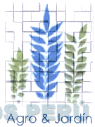 El logotipo conformado por la denominación AGRO & JARDÍN escrita en letras características, en la parte superior se aprecia el diseño estilizado de espigas, como fondo se aprecian figuras irregulares, todo en los colores azul, verde y gris; conforme al modelo adjunto
