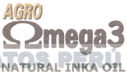 La denominación AGRO OMEGA 3 escrita en letras características donde la letra O de la palabra OMEGA se encuentra representada por una figura irregular, debajo se aprecia la frase NATURAL INKA OIL escrita en letras características, todo en los colores marrón oscuro y marrón claro; conforme al modelo adjunto